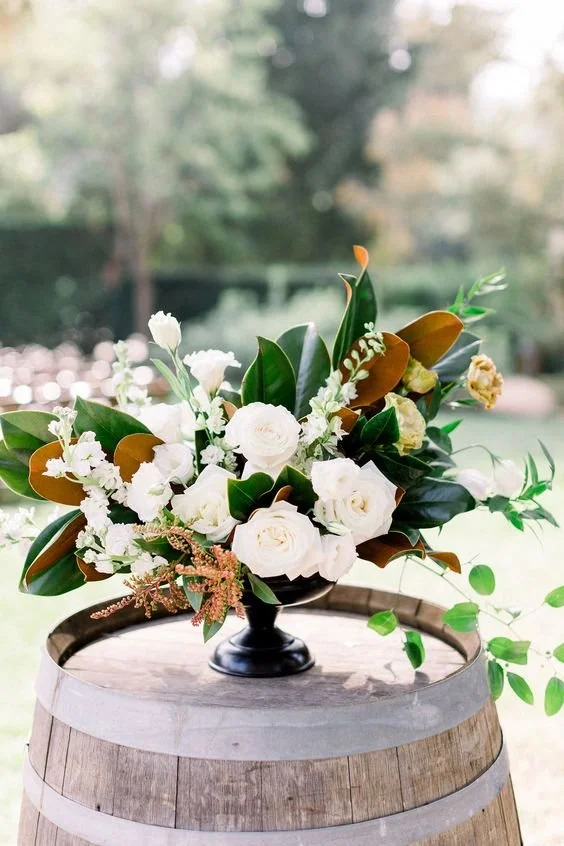 Like the tree? You got it! Magnolia leaves are my favorite visually stunning foliage. The tops of the leaves are glossy, deep green - perfect for the elegant bride or the tropical destination on the beach. Turn the leaf over and you have an incredible, medium brown matte that ties into a bohemian, modern, high-end look. These leaves are huge, so a few Magnolia stems go a long way. While they’re pricey, you get a big bang for your buck!